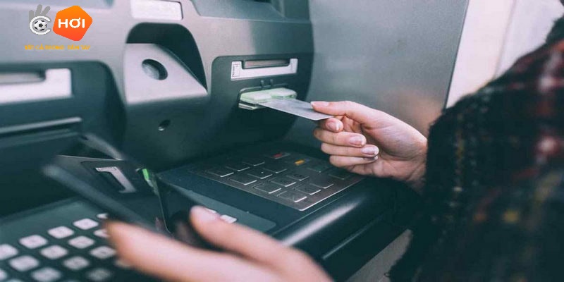Người chơi gắn thẻ tín dụng hoặc ghi nợ của mình vào máy ATM và nhập mã PIN. Và chọn nạp tiền vào tài khoản OKCHOI.