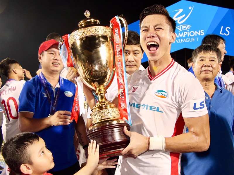 Quế Ngọc Hải và chiếc cúp vô địch V League 1 tại CLB Viettel