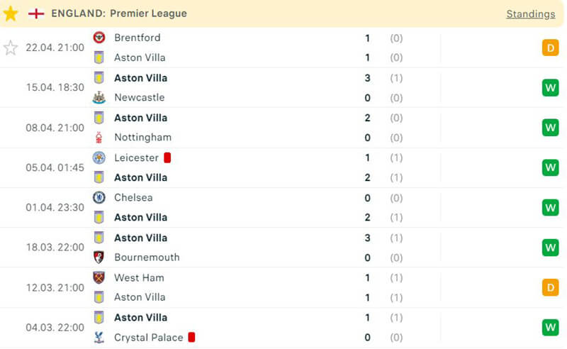 Thống kê 4 trận đấu gần đây nhất của Aston Villa đều nổ cửa Tài; trong khi đó 5/6 trận đấu gần đây nhất của Fulham đều chứng kiến có ít nhất 3 lần lưới rung.