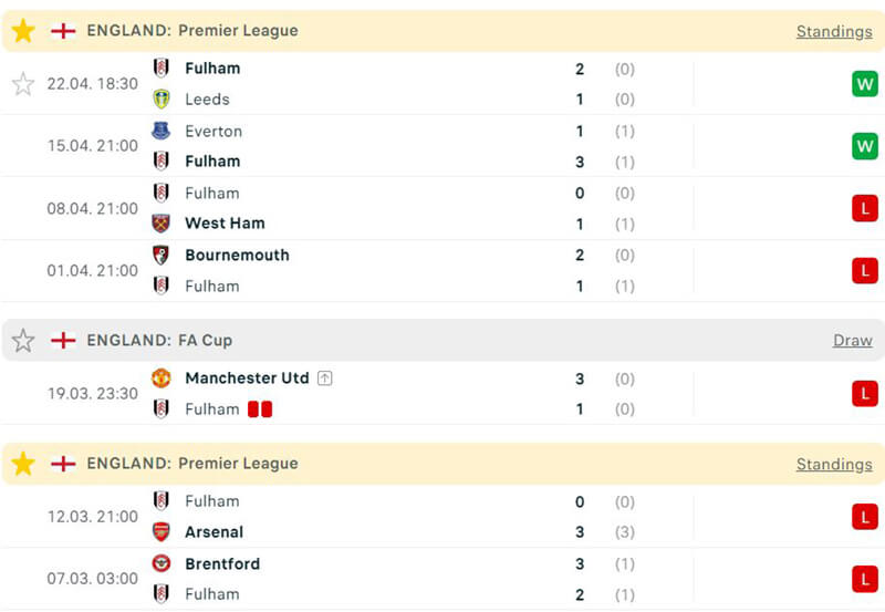 Trái lại hoàn toàn, đội khách Fulham lại có phong độ thi đấu hết sức nghèo nàn. Trong 6 trận đấu gần đây nhất, đội bóng này đã để thua tới 5 trận. Fulham rất khó để có điểm ra về trước 1 Aston Villa hững hực khí thế như vậy.