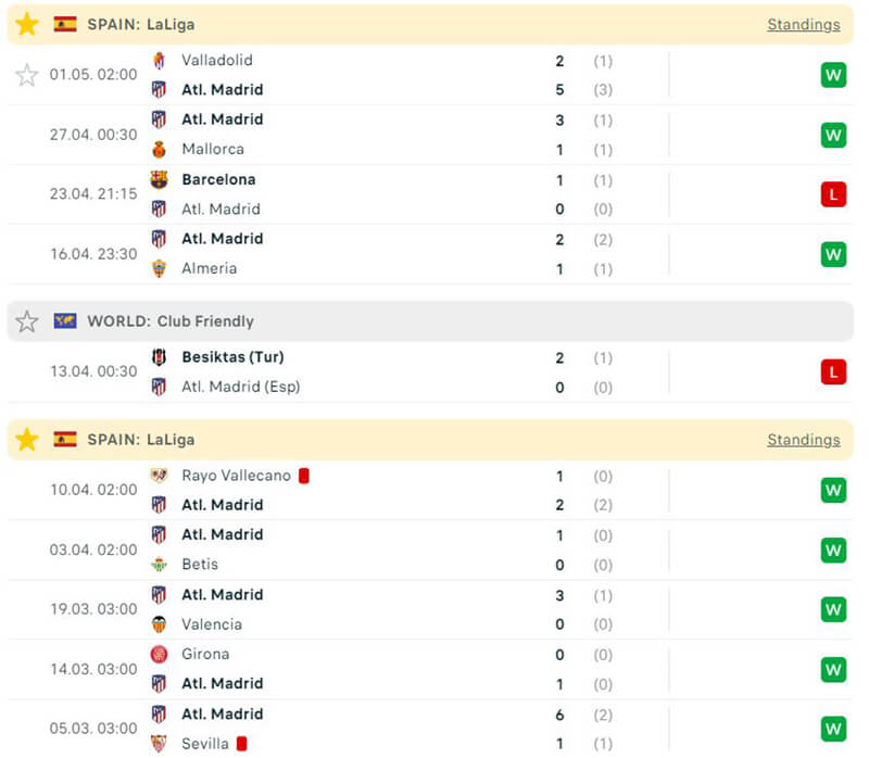 Phong độ thi đấu giữa Atletico Madrid vs Cadiz