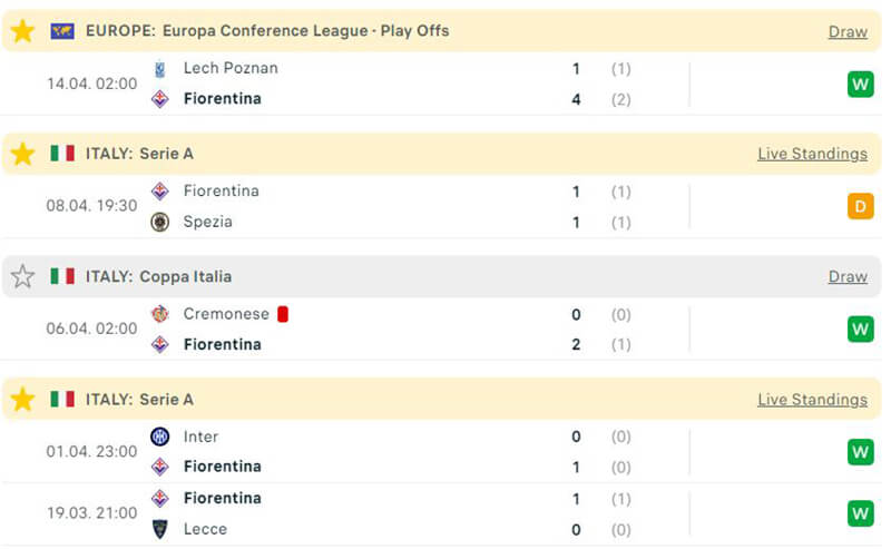 Đội chủ nhà Fiorentina đang có bước nhảy vọt trên bảng xếp hạng. Đội bóng này đã có tới 11/13 trận chiến thắng trên 3 đấu trường.