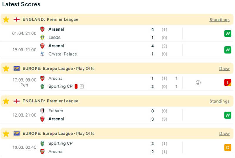Phong độ thi đấu giữa Liverpool vs Arsenal