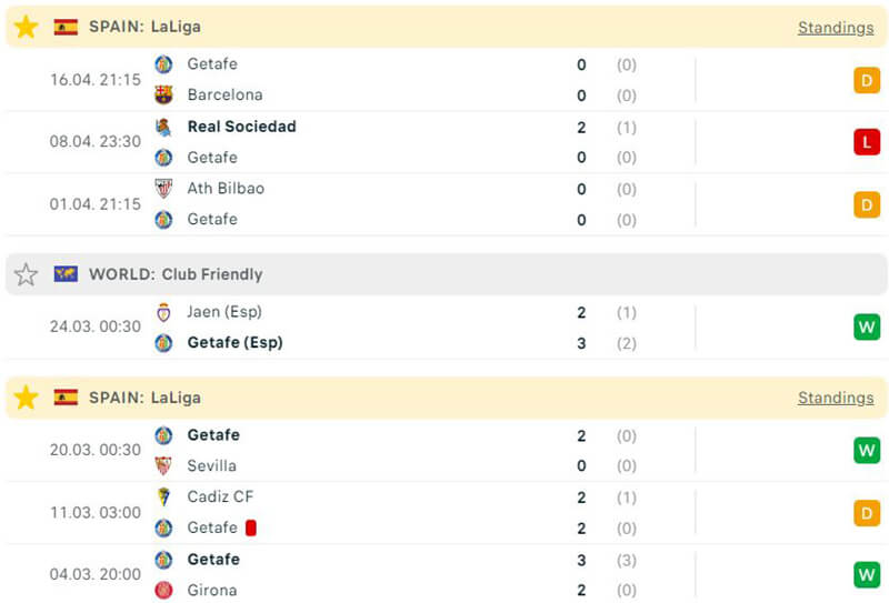 Phong độ thi đấu giữa Mallorca vs Getafe