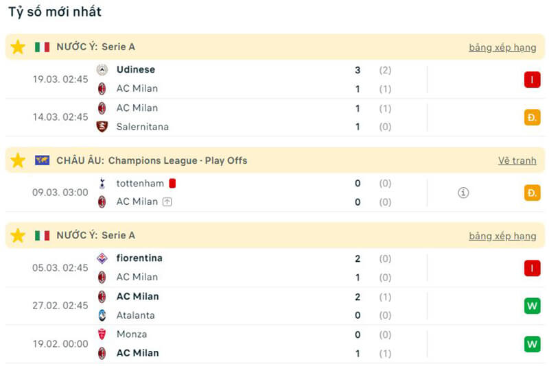 Phía bên kia chiến tuyến, dù không thể bảo vệ được chức vô địch nhưng AC Milan cũng đang có thành tích đáng nể khi đội bóng này xếp thứ 5 tại Serie .
